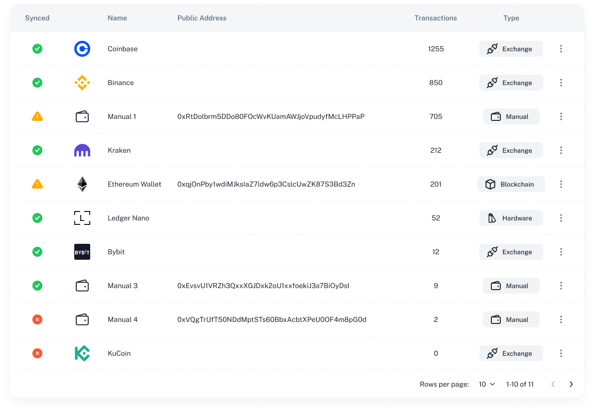 Track and manage all your transactions in one place. Edit, annotate, or add transactions manually. Get a comprehensive view of your crypto activity.